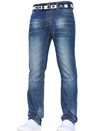 Best Seller! Mens Crosshatch Classic Straight Leg Regular Fit Stylish Denim Jeans JEANBASE All Waist & Sizes Free Belt Gamo Mid Blue 46W X 32L Review