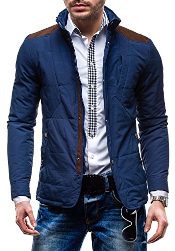 VERSATILE MEN'S JACKET Stay comfortable while looking your best in this jacket. This blazer from BOLF-Collection has decorative snaps closure and practical lining in trendy color navy. ROGIOR 198 also has two side pockets, one inside pocket and chest pocket, which provide quite much of storage space. Fabric is made of 100% polyester and is therefore environmentally friendly. High quality of fabric allows the sweat-resistant and great freedom of movement. On the other hand this soft material and figure-hugging cut make this blazer versatile and suitable for any occasion. At the same time buttoned-cuffs and half-patches on elbows make it chic. Are you looking for timeless design and attractive look? Then this jacket is just the thing for you!