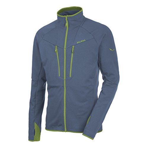 Mens breathable stretchy fleece jacket. Color: Blue / Size: L - The M Antelao Polarlite Full-Zip by Salewa feels like wearing a second skin. This stretchy fleece jacket has a close-fitting shape, softly wrapping itself around the body. The Antelao Polarlite Full-Zip by Salewa for men stands its ground against wind chill because excess transpiration is simply wicked away from the skin. - Activities: Glacier mountaineering, Mountaineering - Quick-drying - Warm - Four-way stretch - Breathable - Easy care - Wicking - Soft inner collar for increased comfort - Ergonomically shaped sleeves - Sleeve with integrated stretchy insert and thumbhole for precise fit - Chest pocket designed for easy access while climbing or with a backpack - Ease of movement through stretch inserts - Optimal moisture transport to avoid chill effect - Stretch, double-stitched seaming - Bonded details - Fit: Athletic Fit - Back length: 72 cm (Size L) - Weight: 384 g (Size L) - Main material: Polarlite Superstretch Fleece, brushed / 97% Polyester, 3% Polyamide - Finishing: Soft brushed inner face