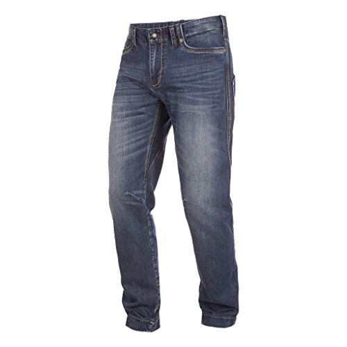 Mens comfortable durable sports climbing jeans. Color: Blue / Size: XL - The Juval cotton climbing pants by Salewa for men does not only look nice in the vertical world but also performs great in your leisure time. It has a high stretchability and a gusset for maximum freedom of movement and comfort. In addition, the knees are ergonomically pre-shaped and fit the Juval Cotton Pant by Salewa is rather narrow for best performance on the wall. - Durable, breathable, stretchy - Belt loops - 2 front pockets - 2 rear pockets - Gusset for freedom of movement - Ergonomic pre-shaped knees - Fit: Regular - Pant leg fit: Slim - Side seam length: 105 cm - Weight: 550 g - Main fabric: Cotton, Soft Denim Washed
