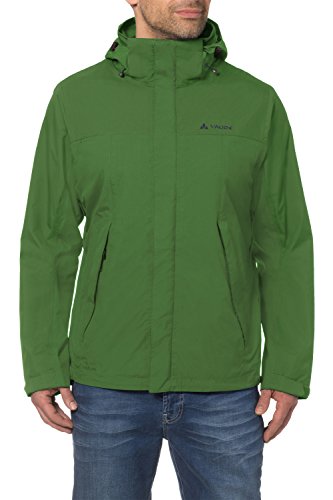Mens waterproof breathable jacket. Color: Green / Size: XXL - Travelling pretty: the Mens Escape Pro Jacket is an attractive, ecologically friendly 2 layer jacket by Vaude for endeavors of both urban and alpine nature. Pair it up with your favorite jeans or best pair of hiking pants. The Mens Escape Pro Jacket by Vaude is a highly versatile with detachable hood and underarm ventilation. You can always take it along, just pack it up small and stash it in its own pocket. All textile materials are also ecologically manufactured in accordance with the stringent bluesign® standard. - 1 front pocket to store the jacket - 2 covered front zip pockets - 1 inner pocket with zip - Front zip with double flap - Adjustable hem - Adjustable cuff with velcro - Removable, adjustable hood - Underarm ventilation with double flap - Centerback Length: 75 cm - Weight: 543 g - Shell: 100% Polyamide - Membrane: Ceplex Active / 100% Polyurethane - Lining: 100% Polyamide - Mesh lining: 100% Polyester