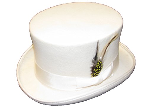 Best Seller! WHITE 100% WOOL SATIN LINED WEDDING EVENT FELT TOP HAT WITH FEATHER (MEDIUM) Review